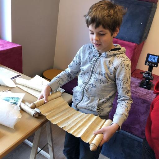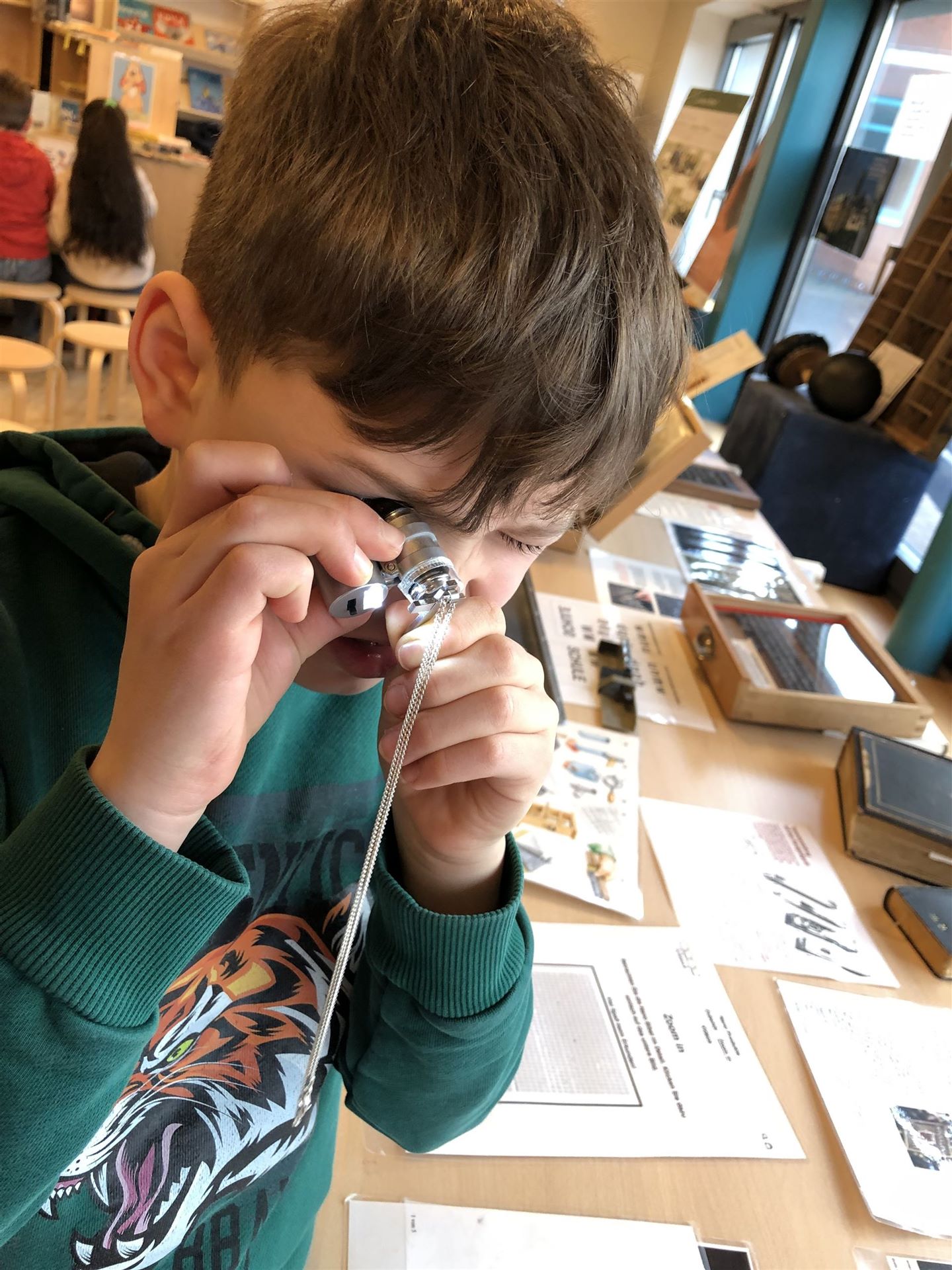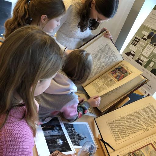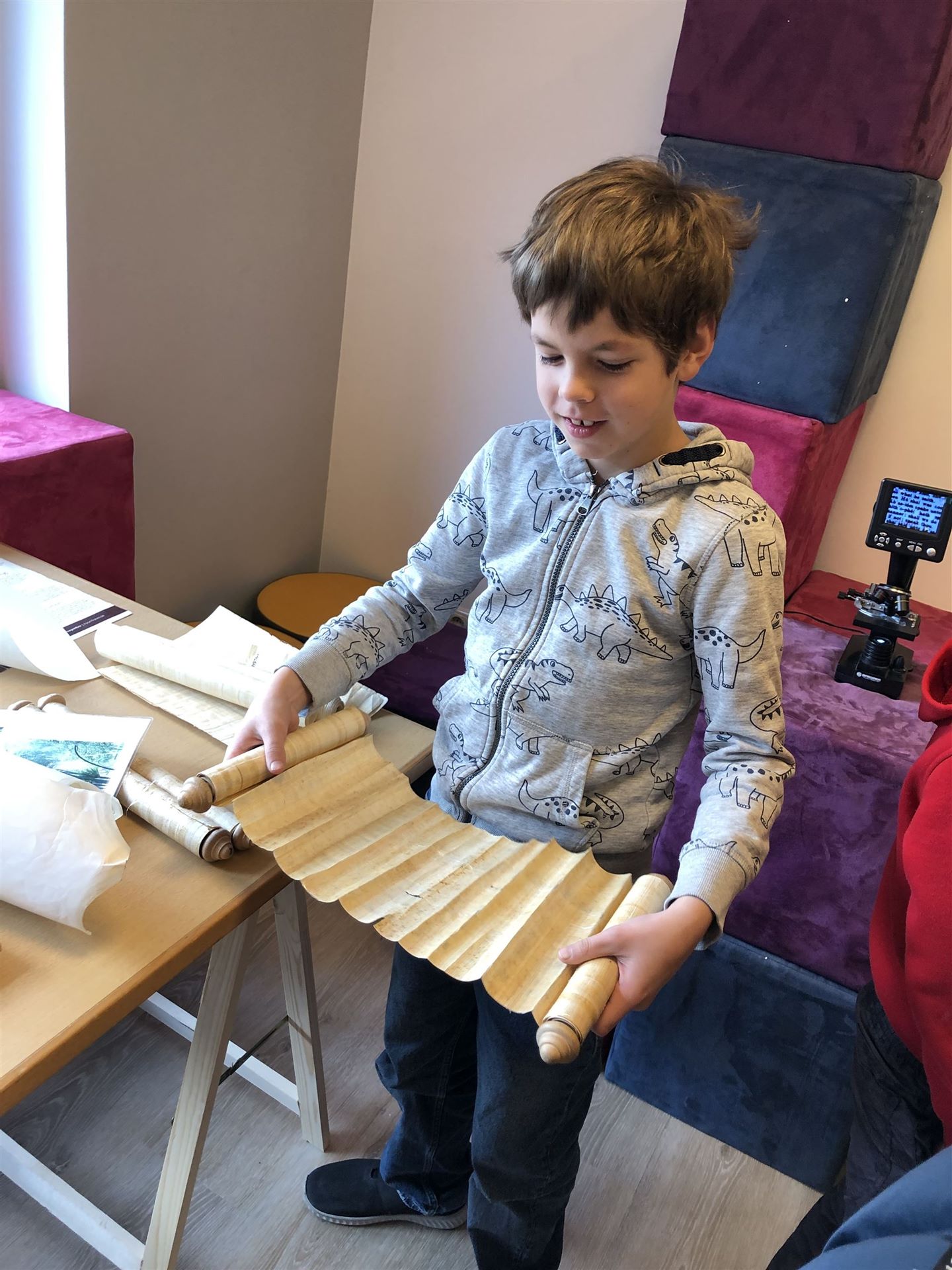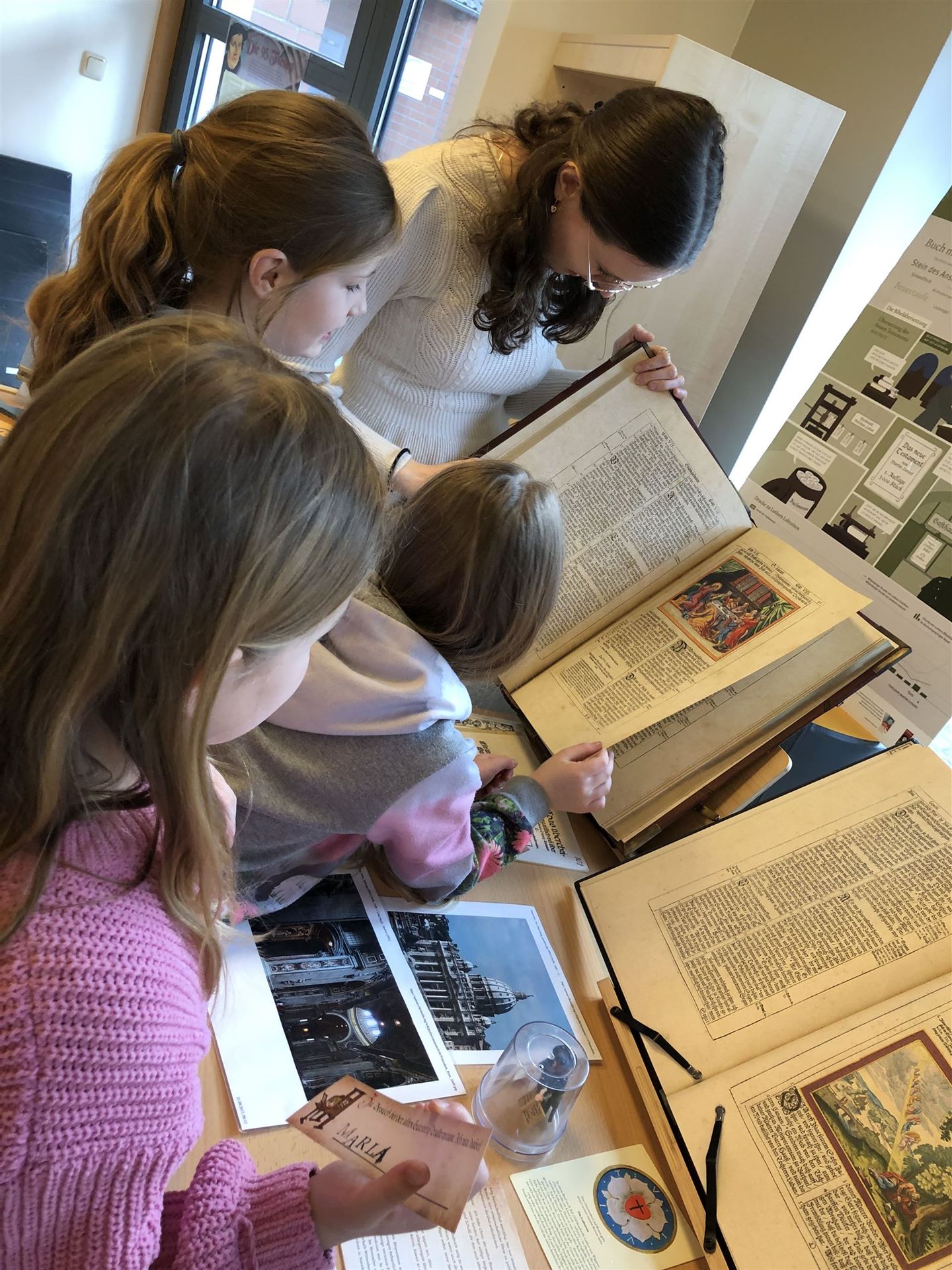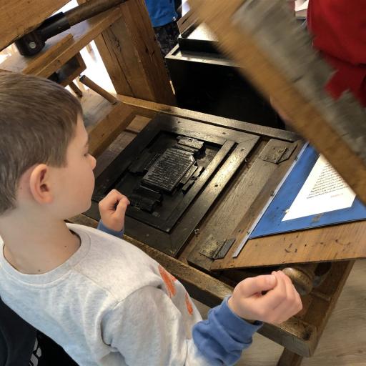 Am 29. Februar 2024 konnten die 3. und 4. Klassen viel über die Entwicklung der Druckkunst lernen. Das Ehepaar Schlawer war nun schon zum dritten Mal zu Gast bei uns und sie brachten außer dem Nachbau der Gutenberg-Buchpresse viele weitere interessante Exponate mit. Darunter waren Bibeln in verschiedenen Größen, Druckplatten und Lettern und alles durften die Kinder ansehen und ausprobieren. Jedes Kind durfte mit der Buchpresse eine Seite drucken und mitnehmen.