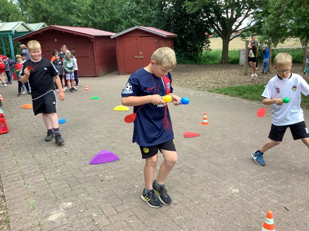 Auch in diesem Jahr hat unser Förderverein wieder ein Spiel- und Spaßfest für den zweiten Jahrgang organisiert und durchgeführt. Die Teams der Klassen 2a, 2b und 2c durchliefen dabei einen spannenden Parcours in der Sporthalle. Die Klasse mit den meisten Klassenpunkten war in diesem Jahr die Klasse 2b.